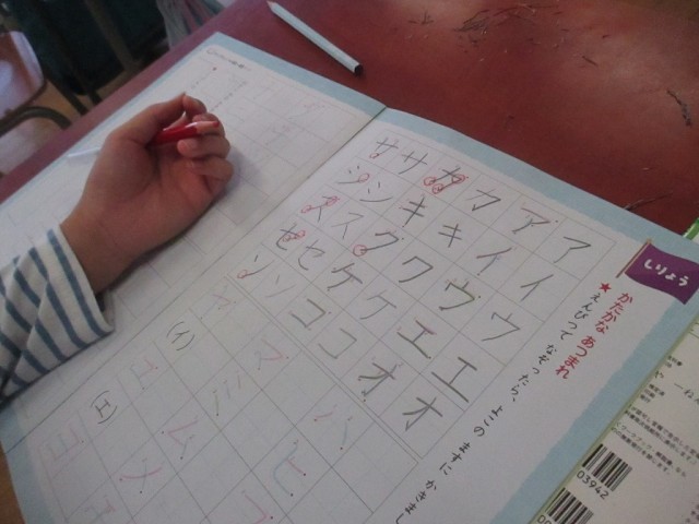 10月16日(木)1年生 書写 公開日 2025/10/16 更新日 2025/10/16 できごと カタカナの書き方を学習しています。スーパーやホームセンターでも、カタカナをたくさん見かけますね。書いたり読んだりして、しっかり覚えましょうね。