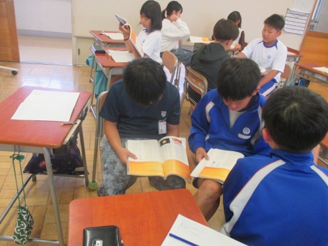 季節の言葉「秋」をテーマにいろいろな読み物を読みあいます。古文や俳句などを読みながら、秋のよさ、味わいを感じ取ろうとしています。一人で味わったり、二人で読みあったり。皆さんは、どんな秋が好きですか?