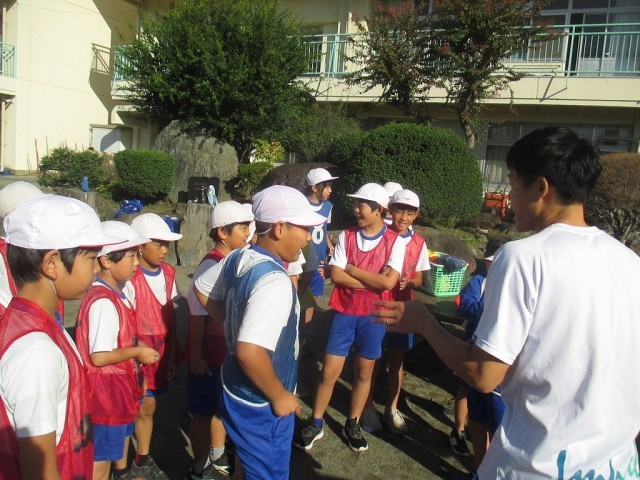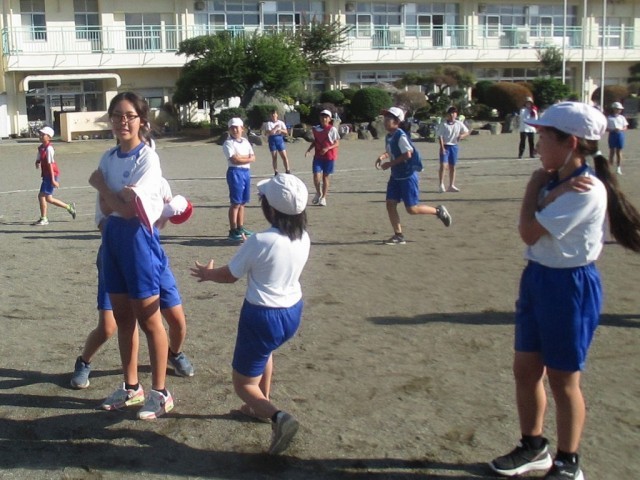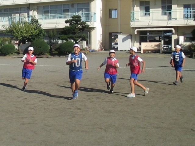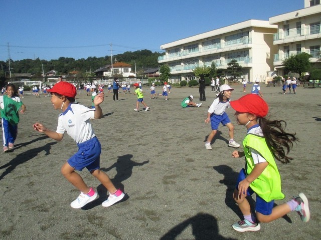 10月17日(金)体育集会 公開日 2025/10/20 更新日 2025/10/20 できごと 体育委員が企画してくれた「レンジ鬼」。ビブスを着た鬼にタッチされると、両手を胸に交差したまま固まってしまいます。しかし、仲間が二人で手を取り合って「レンジでチン」と言いながら、固まっってしまった仲間を囲ってあげると、再び逃げられます。大盛り上がりの鬼ごっこでした! +3