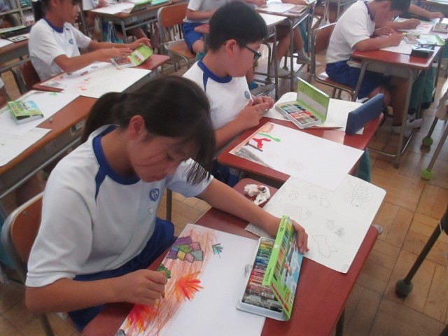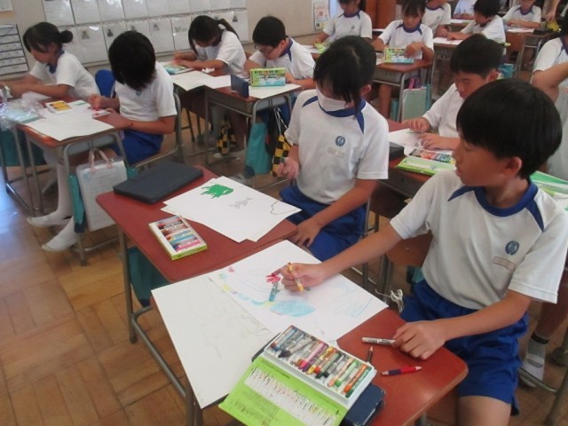 10月17日(金)4年生 図工 公開日 2025/10/20 更新日 2025/10/20 できごと 「きれいな海」って、みんなはどんなイメージ?サンプルの画像や友だちと意見を交わしながら、画用紙にレイアウトして色を付けていきます。いろいろな「きれいな海」が描かれていました。 +1
