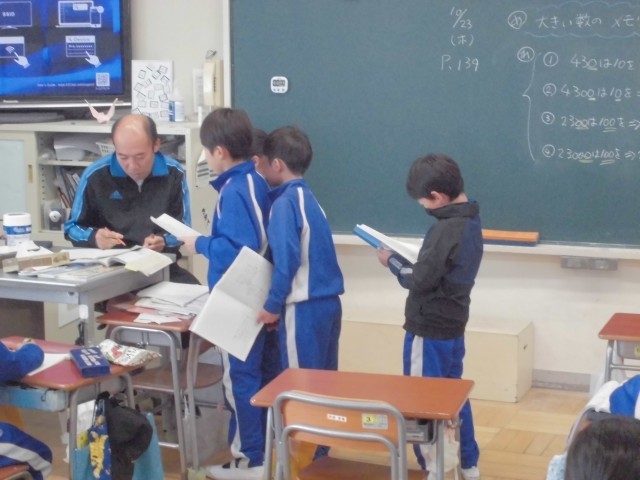 10月23日(木)3年生 算数 公開日 2025/10/23 更新日 2025/10/23 できごと 先生の出題した問題を解いて、マルをもらいに教卓へ向かいます。全員の取りかかりは早く、すぐに列ができました。 +3