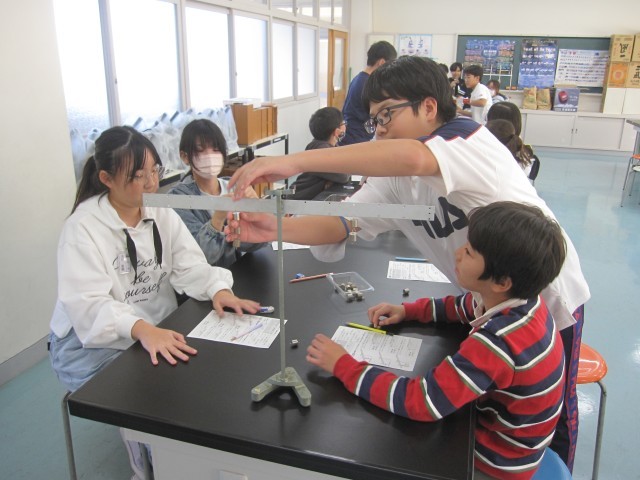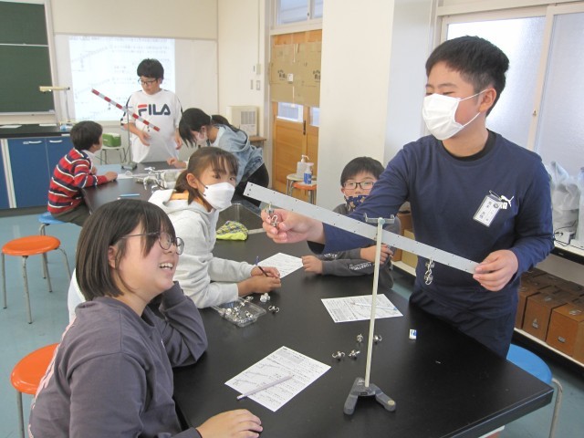 10月29日(水)6年生 理科 公開日 2025/10/30 更新日 2025/10/29 できごと てこが水平につり合うときのきまりを調べました。 てこが水平につり合うときのきまりは、次の式で表すことができることがわかりました。 左うでの(おもりの重さ)✖(支点からのきょり)=右うでの(おもりの重さ)✖(支点からのきょり) +4