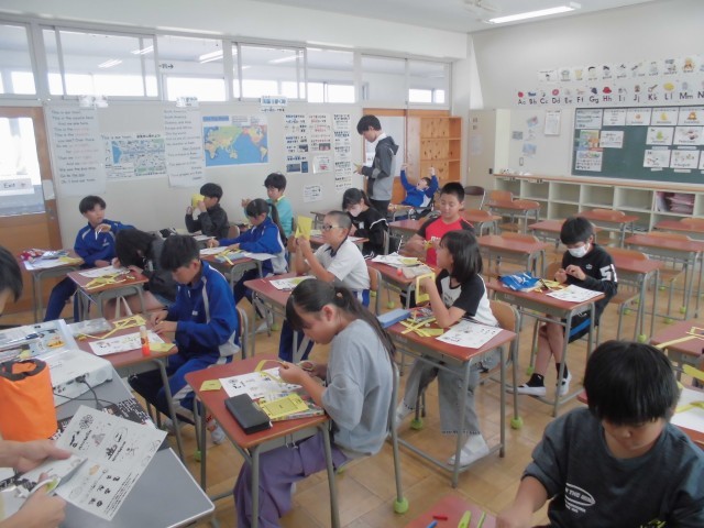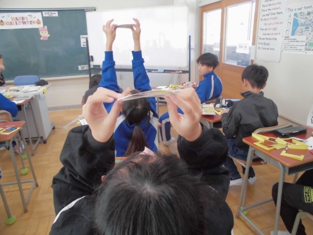 10月30日(木)5年生 外国語 公開日 2025/10/30 更新日 2025/10/30 できごと ハロウィンに向けてカードを製作しました。色を塗った2枚のカードをあえて貼り合わせ、透かしてイラストが浮かび上がる趣向です。 +7