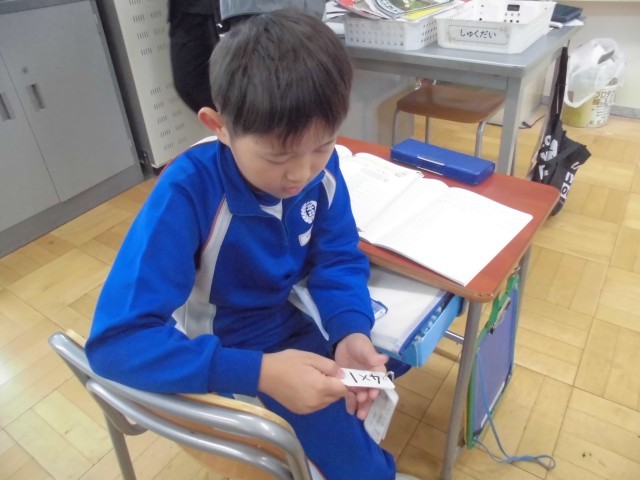 10月31日(金)2年生 算数 その2 公開日 2025/10/31 更新日 2025/10/31 できごと 4の段の九九の学習を終え、九九カードで暗記をしているようすです。完璧に覚えたら、先生のところに行き、暗唱してみせます。 +6