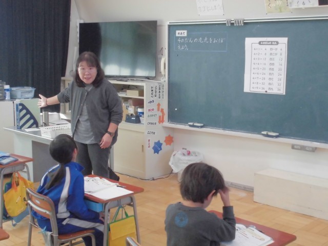みんなの前で何人か、4段の九九を暗唱している場面でした。