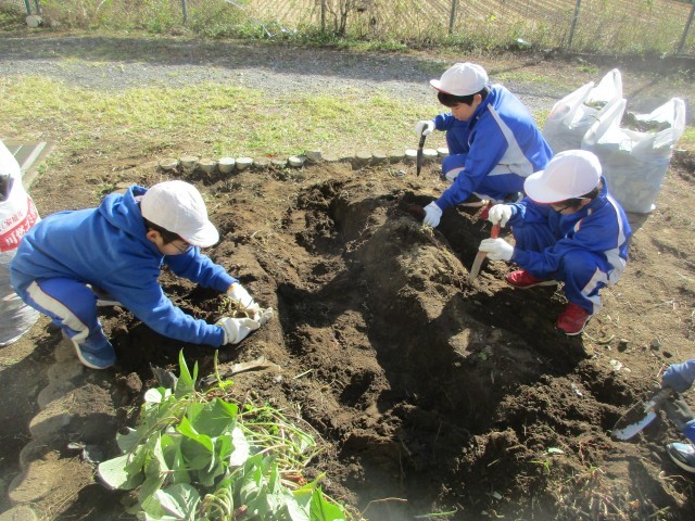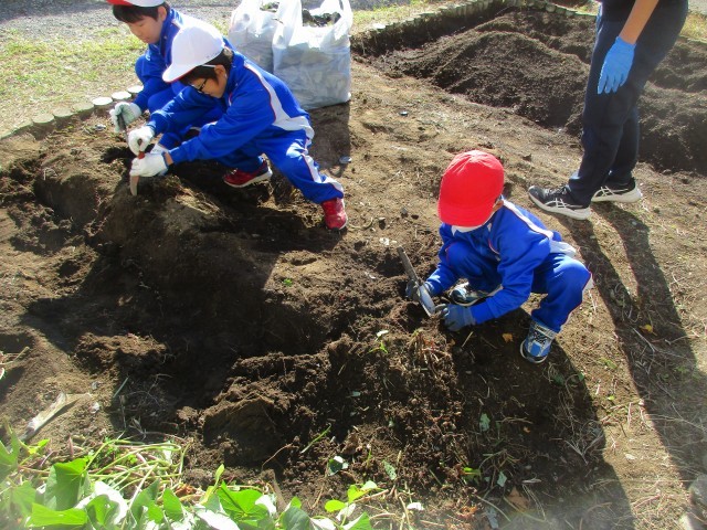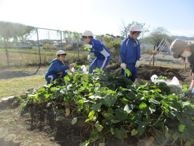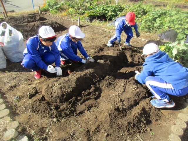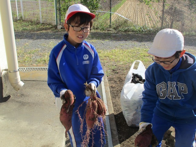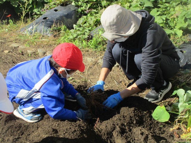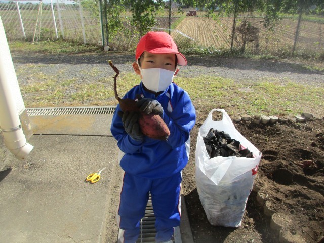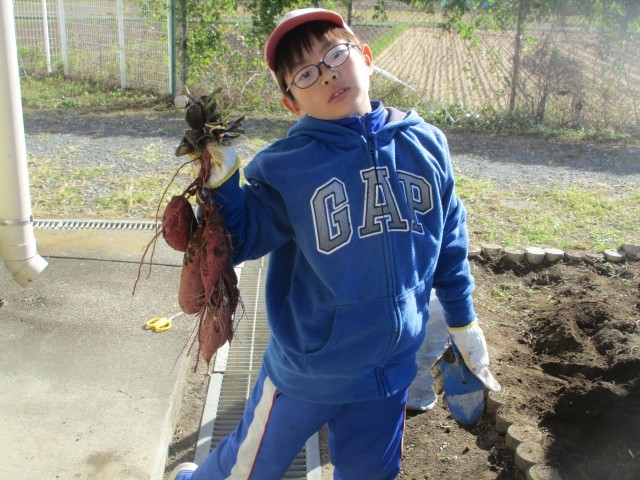 天気も良く、イモ掘り日和になりました。大きなサツマイモが掘れたときは、もちろん大喜びです。