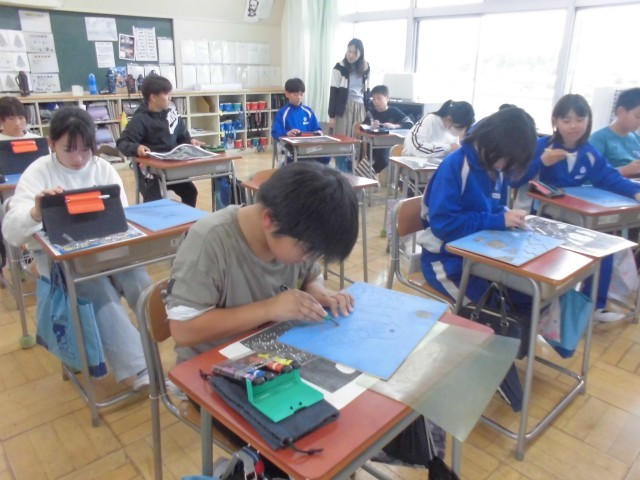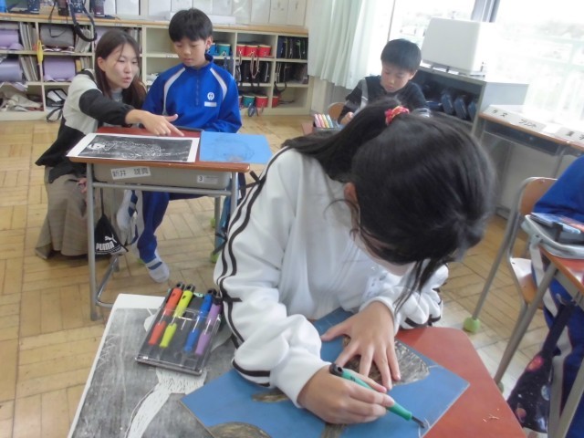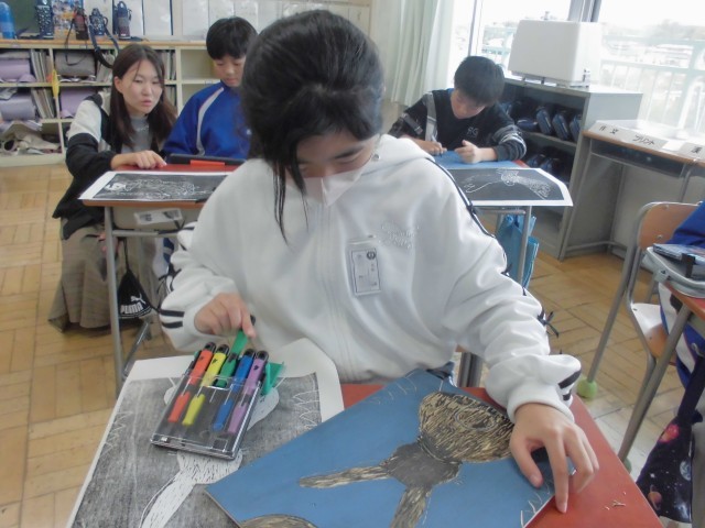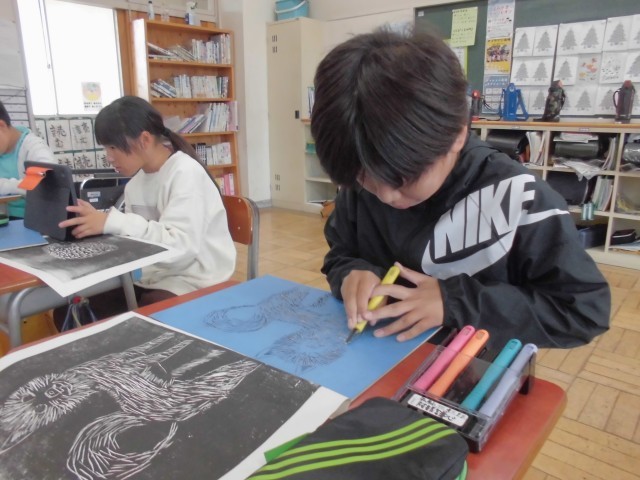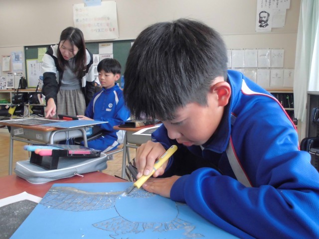 一度刷った自分の作品を見ながら、さらに効果を考えて堀り加えていきます。