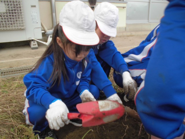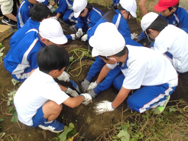 11月5日(水)2年生 生活 公開日 2025/11/05 更新日 2025/11/05 できごと サツマイモの収穫です。ツルをていねいに処理してから、みんなで一斉に掘り始めました。ラグビーボール大のイモにはみんなびっくりしました! +6