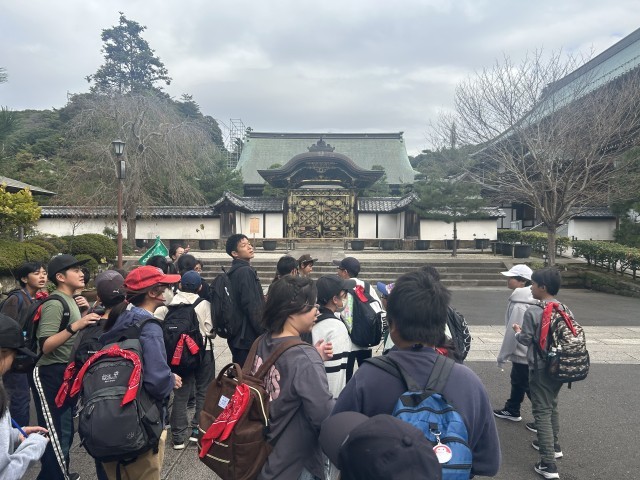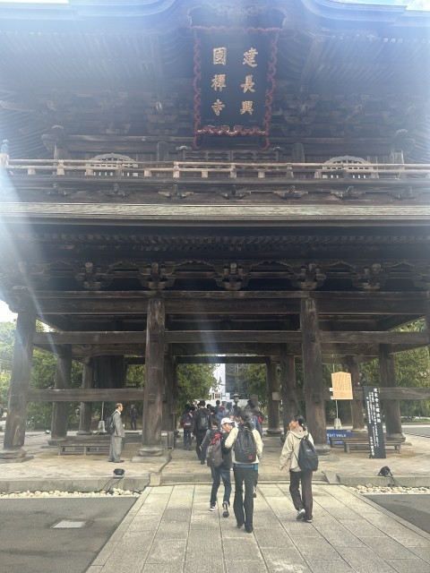 建長寺に到着です。ガイドさんの説明は簡単にしていただき、班別活動はちょっと遅れてスタートします。