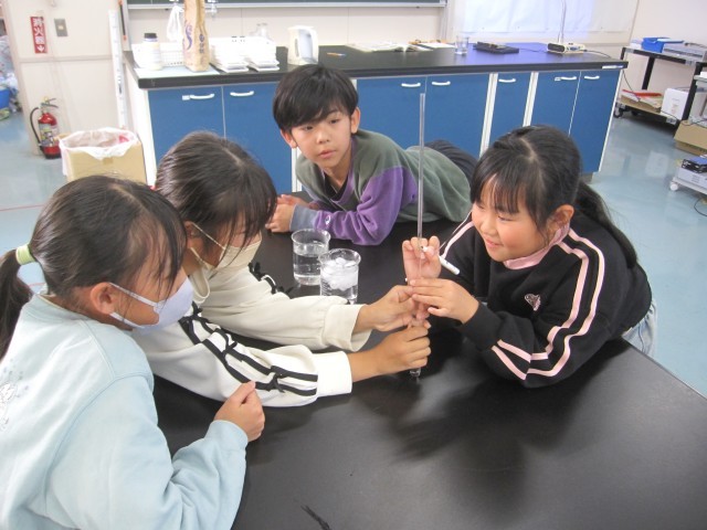 11月6日(木)4年生 理科 公開日 2025/11/06 更新日 2025/11/06 できごと 水の温度を変えて、体積のかわり方を調べました。 水はあたためられると、体積が大きくなり、冷やされると、体積が小さくなりました。温度による水の体積の変わり方は、空気にくらべて、ずっと小さいことがわかりました。 +4