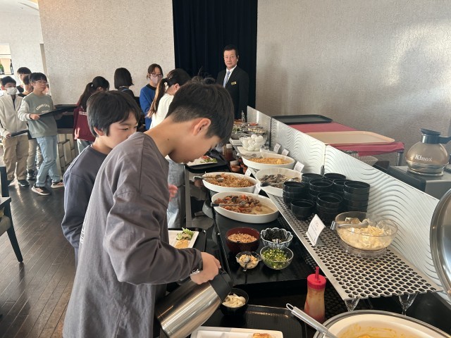 11月7日(金)6年生 修学旅行 その16 公開日 2025/11/07 更新日 2025/11/07 できごと 富士山や海がよく見えるホテルです。朝食ビュッフェも最高の景色です。全員の体調もバッチリです。 +7