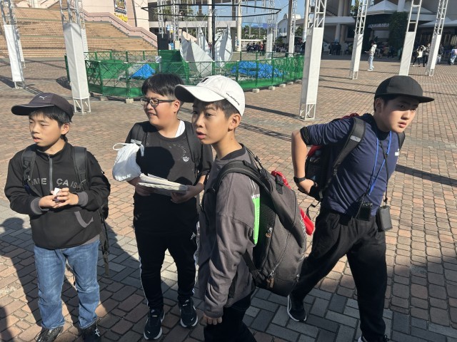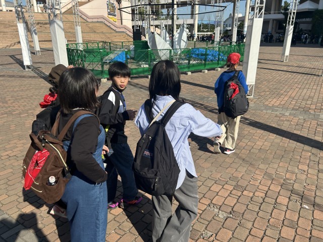移動しながら集合写真をたくさん撮りました。10時になって、班別活動スタートです。