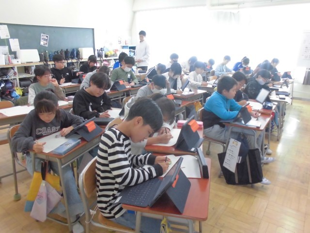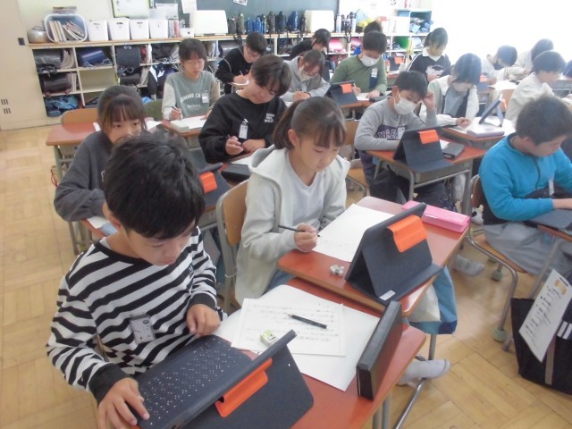 11月10日(月)6年生 国語 公開日 2025/11/10 更新日 2025/11/10 できごと 総合の時間にまとめもしますが、国語の時間に修学旅行の思い出を原稿用紙に作文します。ネタが熱いので、作文への意欲も熱くなれます。 +5