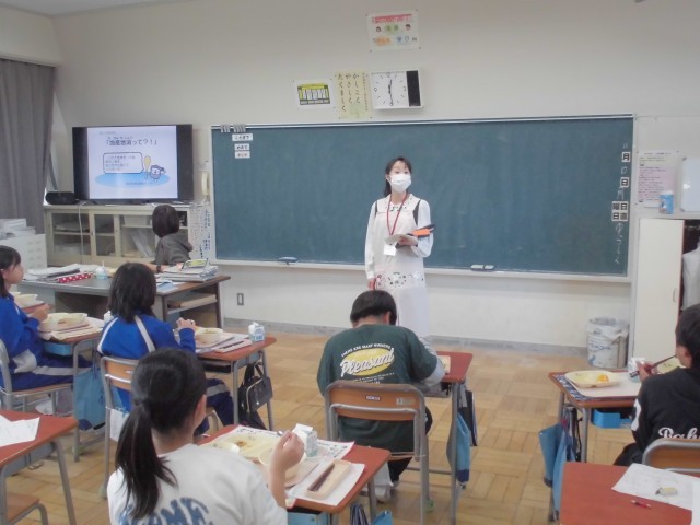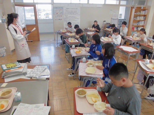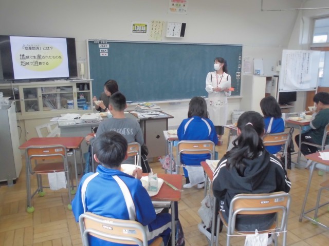 11月10日(月)5年生 食育指導 公開日 2025/11/10 更新日 2025/11/10 できごと 給食センターから栄養士さんがいらして、「地産地消」について詳しく話してくれました。食育はもちろん、5年生にとって社会の学習にもなりました。 +6