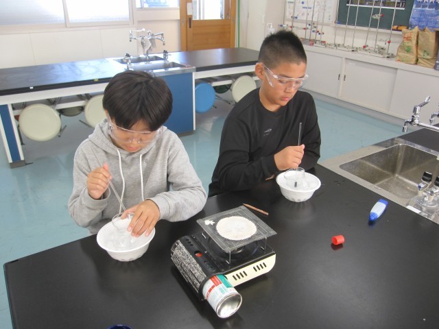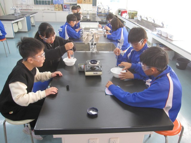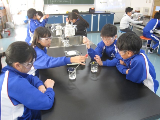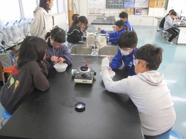 11月12日(水)5年生 理科 公開日 2025/11/12 更新日 2025/11/12 できごと 水よう液を冷やしたり、水をじょう発させたりしてとけている物をとり出すことができるか調べました。 水よう液を冷やすと、ミョウバンはとり出すことができましたが、食塩はほとんどとり出すことができませんでした。水をじょう発させると、ミョウバンも食塩もとり出すことができることができました。 +4