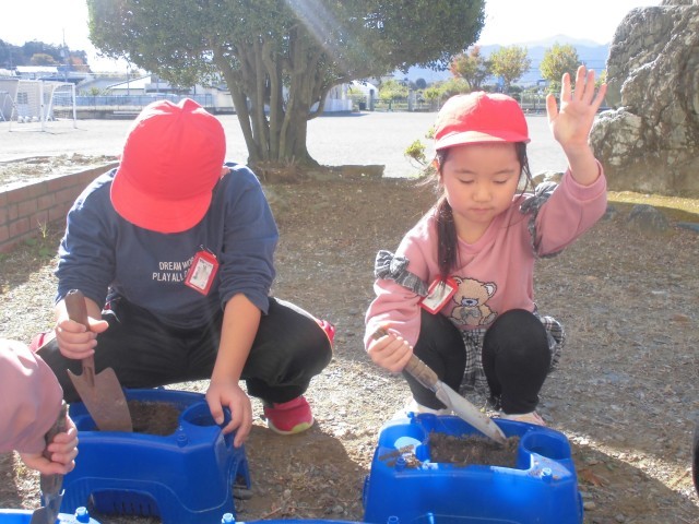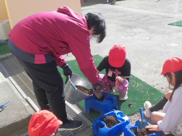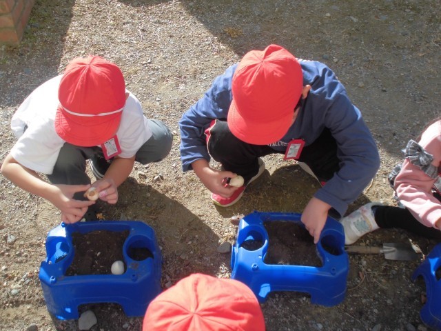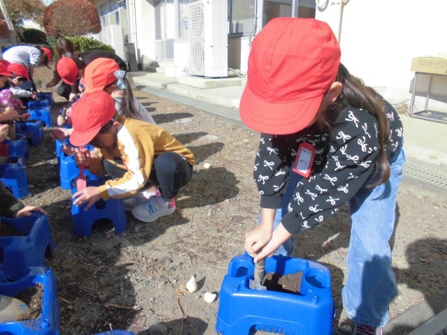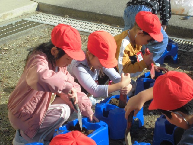 11月12日(水)1年生 生活 公開日 2025/11/12 更新日 2025/11/12 できごと 教室でチューリップの球根の準備や説明を聞いておき、外に出たらそれぞれアサガオの植木鉢に球根を植えます。 +7