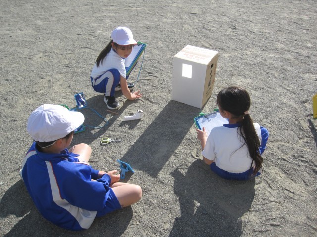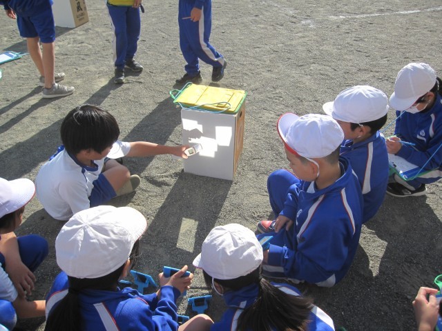 11月12日(水)3年生 理科 公開日 2025/11/12 更新日 2025/11/12 できごと はね返した日光が当たったところの温度を調べました。 かがみではね返した日光を重ねて集めるほど、日光が当たったところは、明るく、あたたかくなることがわかりました。 +4
