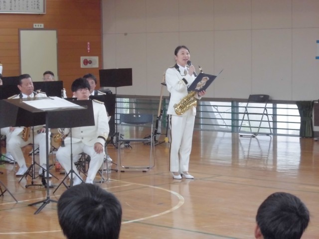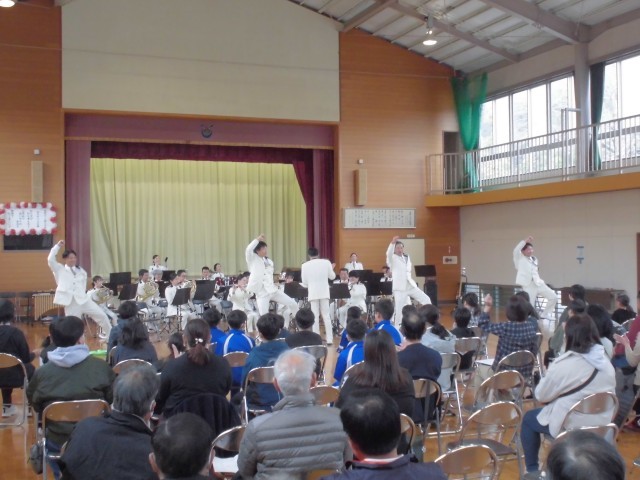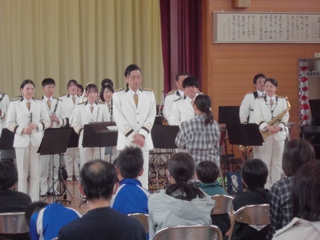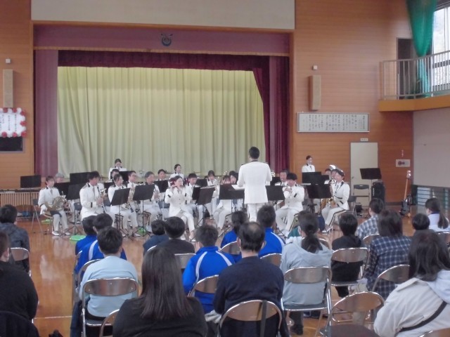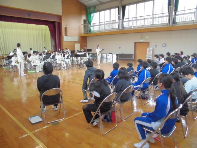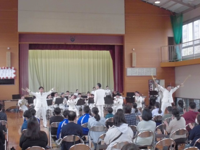 11月13日(木)5年生 県警音楽隊鑑賞会 公開日 2025/11/13 更新日 2025/11/13 できごと 日野小学校での音楽会に招待され、県警の音楽隊の演奏を鑑賞することができました。どの年代も楽しめるプログラムで、手拍子で参加したり、打楽器でともに演奏したりと、大迫力の本格的な演奏を楽しむことができました。 +7