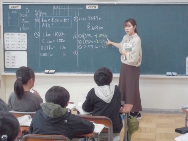 これまで学習してきたことをフル活用して、Kmやmの長さの単位を小数で表す学習を進めます。