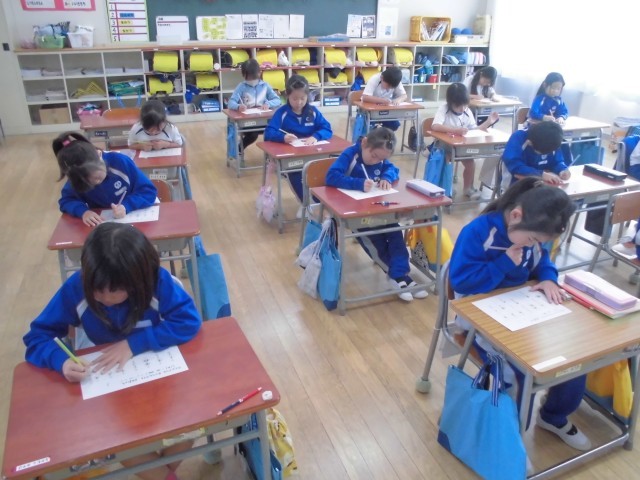 漢字ミニテストです。宿題にしっかりと取り組めていれば…楽勝かな?