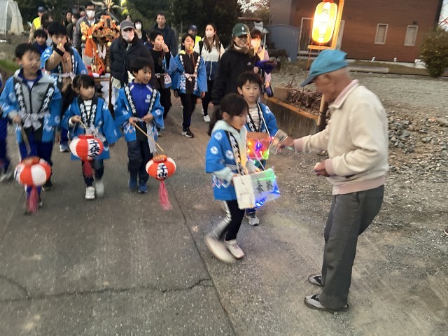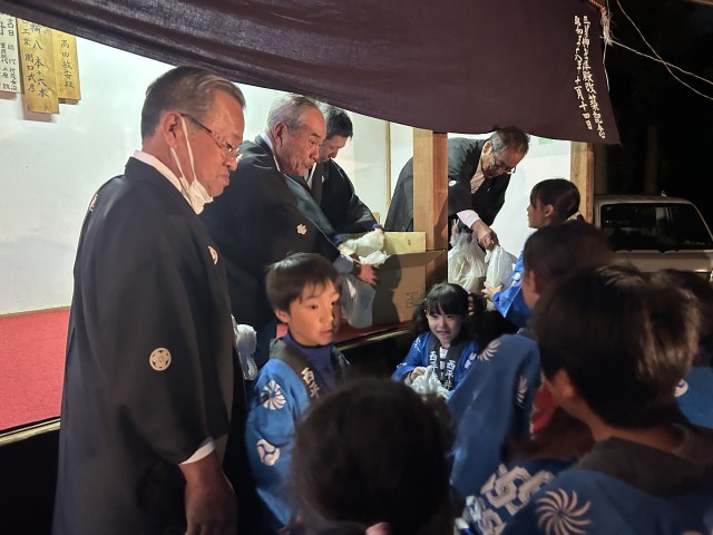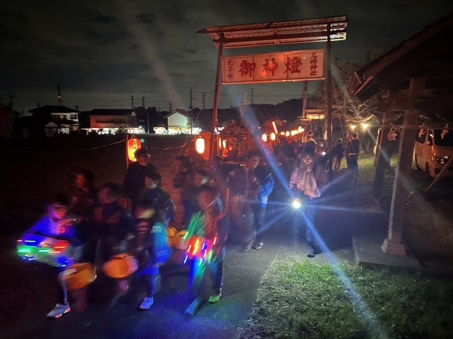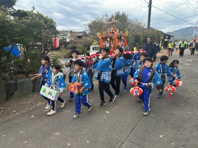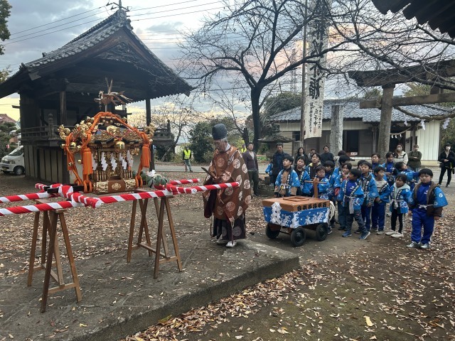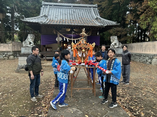 11月14日(金)三嶋神社秋季大祭子どもみこし 公開日 2025/11/14 更新日 2025/11/14 できごと 三嶋神社下ノ宮から上ノ宮まで、「わっしょい!わっしょい!」と元気なかけ声と共に、子どもたちが御神輿を運びます。道沿いのご近所の方がお賽銭を入れてくれたり、到着するとお菓子をもらえたりして、上ノ宮周辺の夜店を楽しみます。「夜祭り」は関東でも有名で伝統ある地元校区のお祭りです。 +7