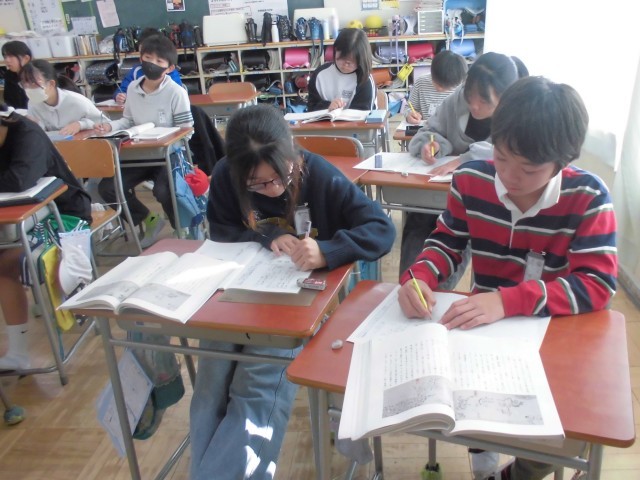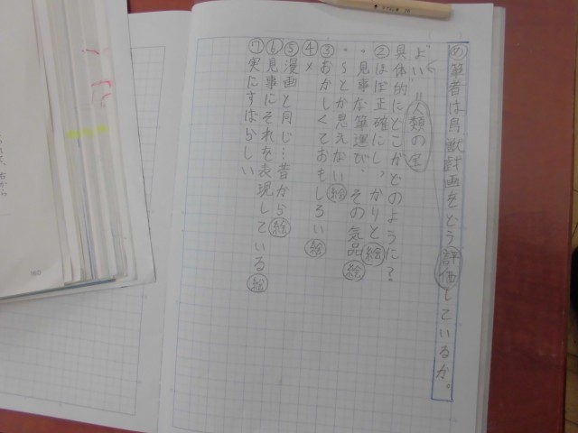 11月17日(月)6年生 国語 公開日 2025/11/17 更新日 2025/11/17 できごと 鳥獣戯画について、本文の作者がどのように評価しているか?分かる部分を見つけて発表していきます。 +6