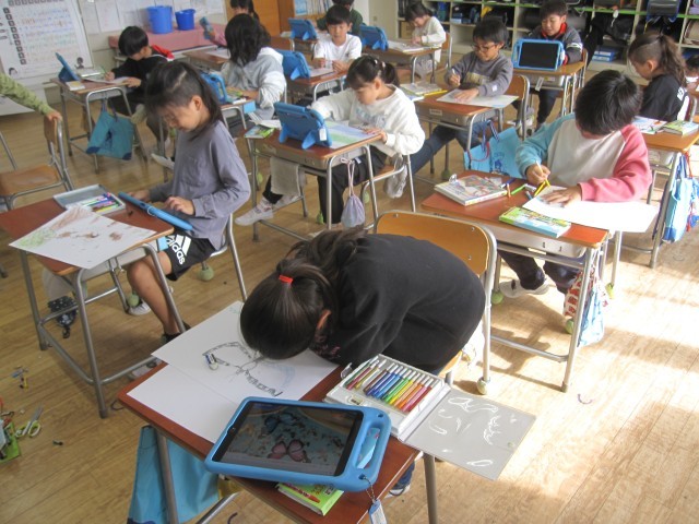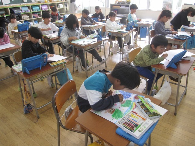 11月18日(火)2年生 図工 公開日 2025/11/18 更新日 2025/11/18 できごと 「みて! わたしの だいすきな しぜん」というテーマで絵をかきました。絵画コンクールに応募すると、自分の作品がプリントされたオリジナルステッカーがもらえます。 +1
