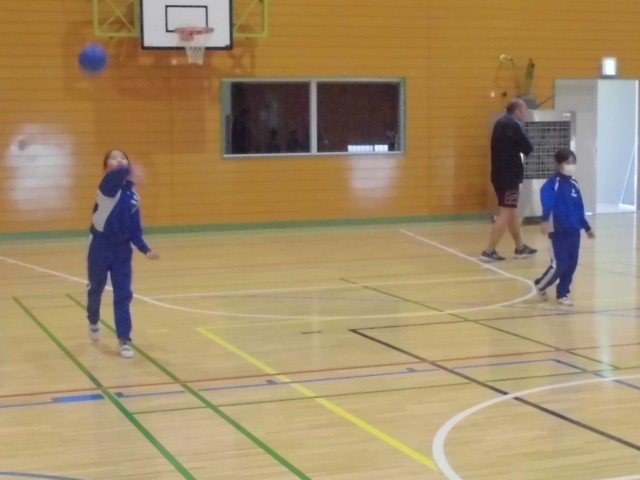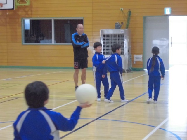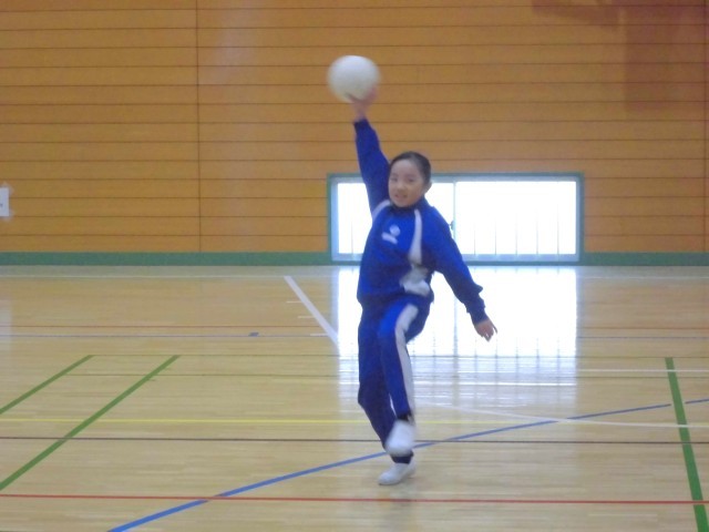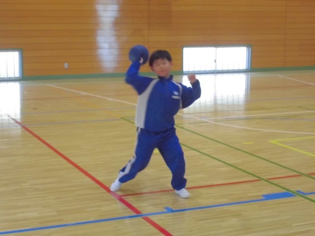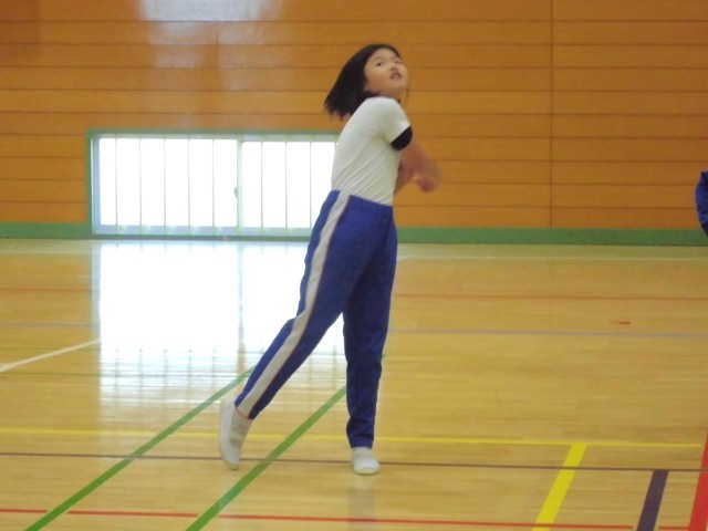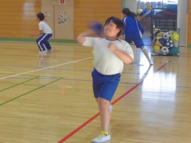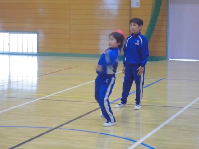 二人組のペアで、キャッチボールです。狙ったところにボールを投げ、それをキャッチする練習です。