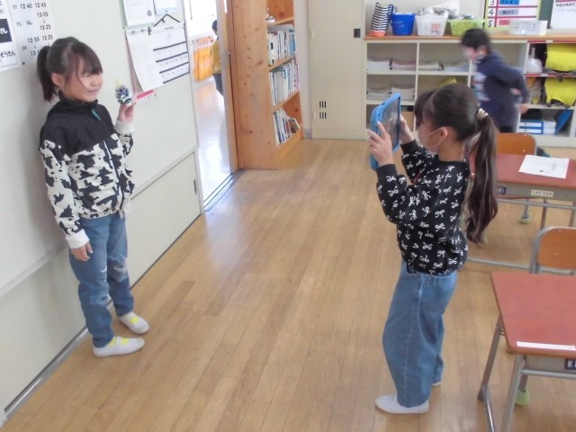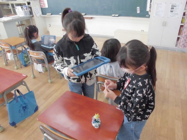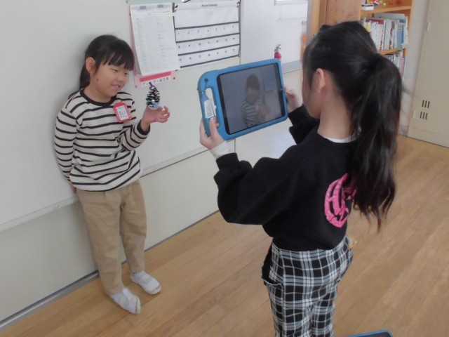 11月19日(水)1年生 生活 公開日 2025/11/19 更新日 2025/11/19 できごと 自分で製作したミニクリスマスツリーと一緒に記念撮影です。自分のタブレットを渡し、友だちに写真を撮ってもらいます。気分はカメラマンです。 +4