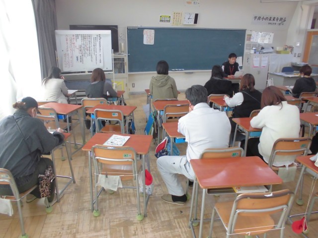校庭での体育の授業参観と、学級懇談会のようすです。