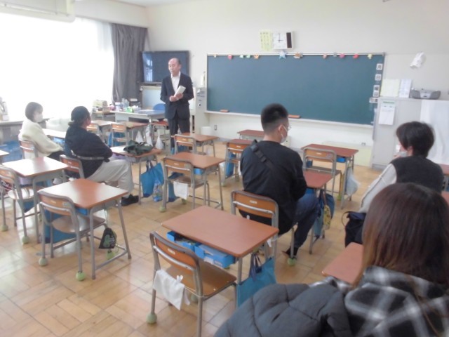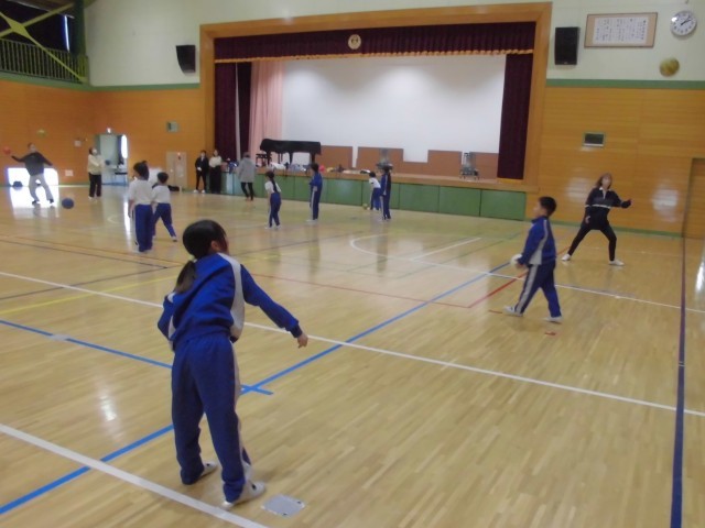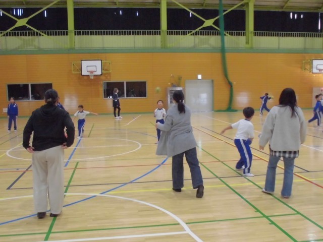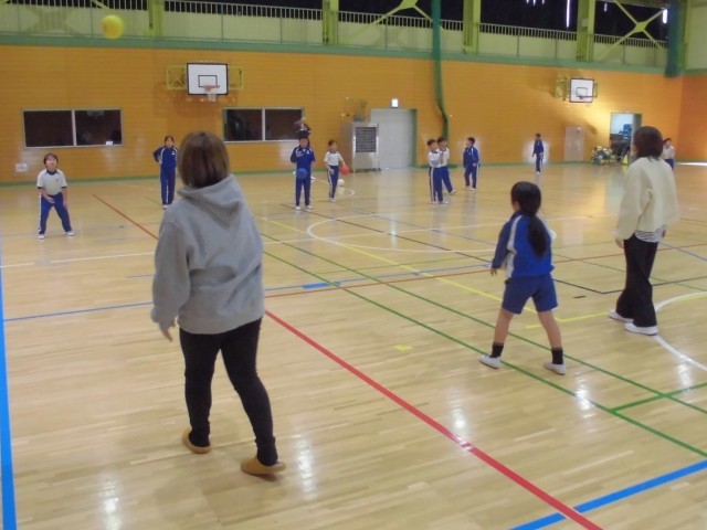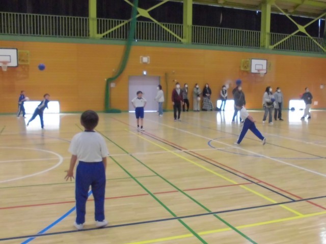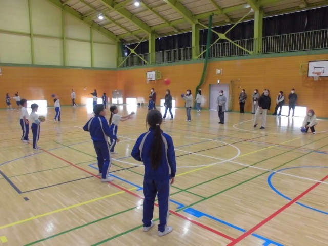 体育館で保護者参加型の授業参観と、学級懇談会のようすです。