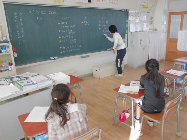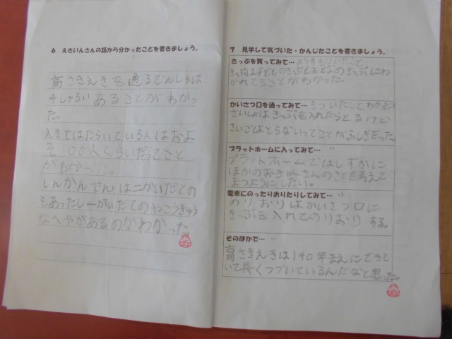 昨日の「駅たんけん」で、見たり聞いたりしたことを、ワークシートにしっかりとまとめます。