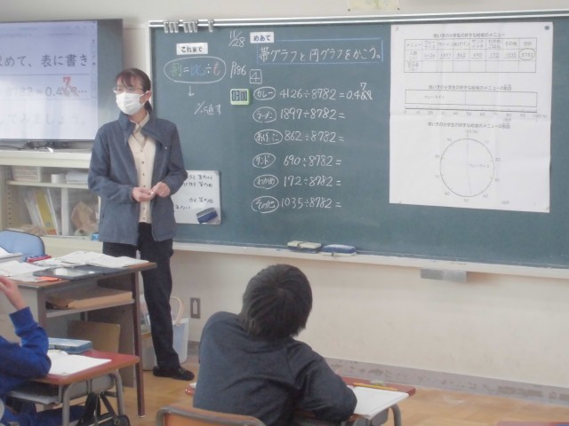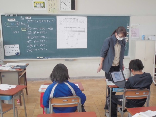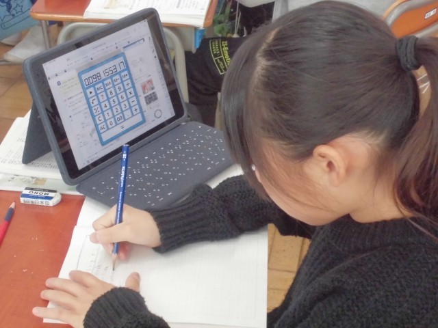 11月28日(金)5年生 算数 公開日 2025/11/28 更新日 2025/11/28 できごと いくつかのデータを百分率で計算し、帯グラフと円グラフで表現します。タブレットはこんな時、電卓としても重宝します。 +5