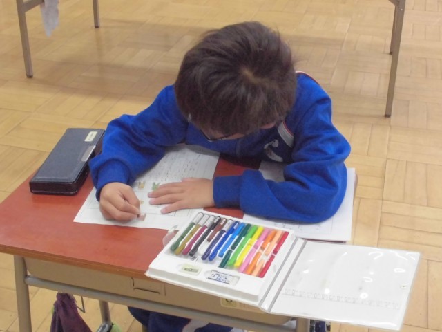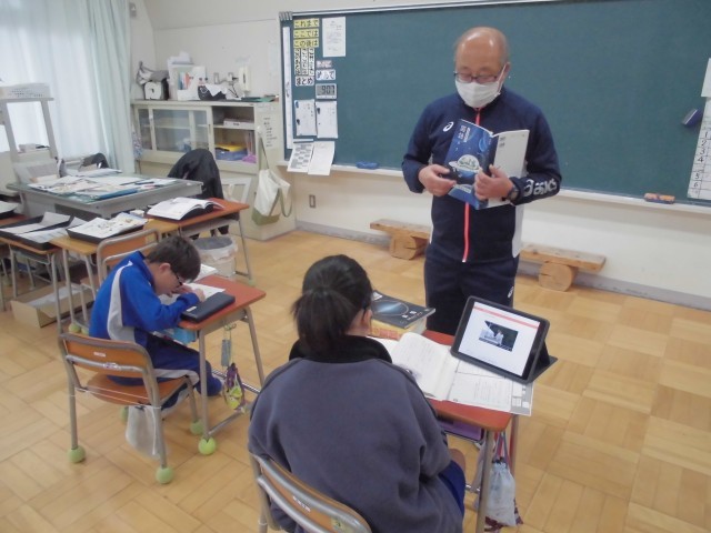 ふた学年同時進行ですが、個別に対応しながら学習が進められています。