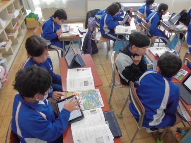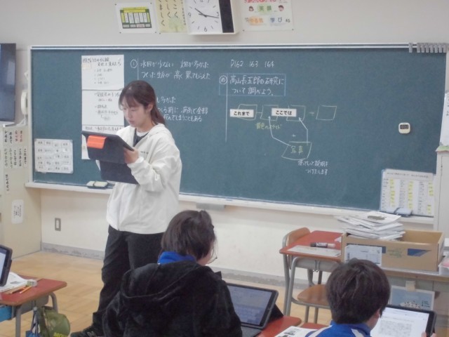 タブレットをフル活用して、高山長五郎の研究についてまとめていきます。