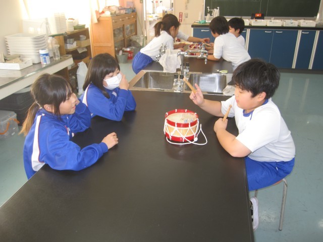 12月3日(水)3年生 理科 公開日 2025/12/03 更新日 2025/12/03 できごと 音が出ていいるとき、物のようすはどのようになっているのか調べました。 音が出ているとき、物はふるえていました。音が大きいときは物のふるえ方が大きく、音が小さいときは、物のふるえ方も小さいことがわかりました。 +6