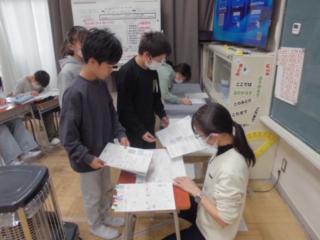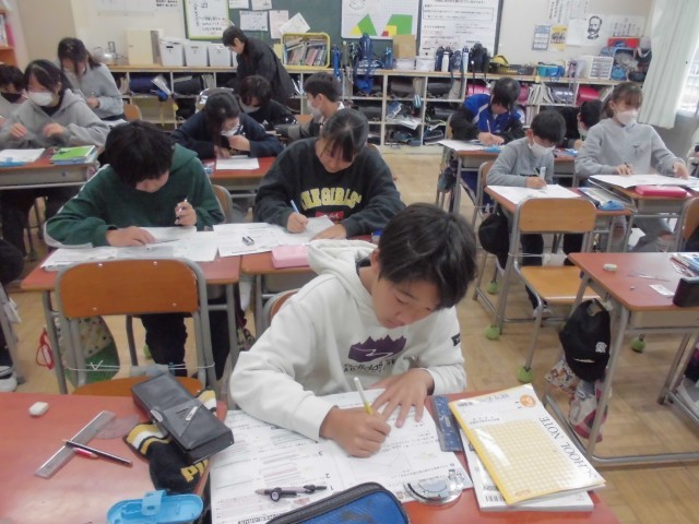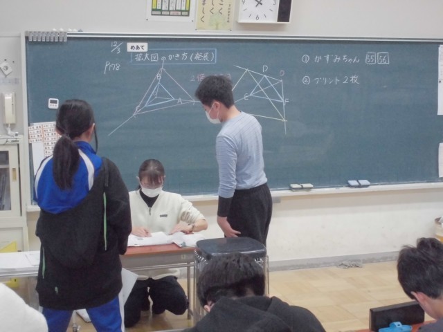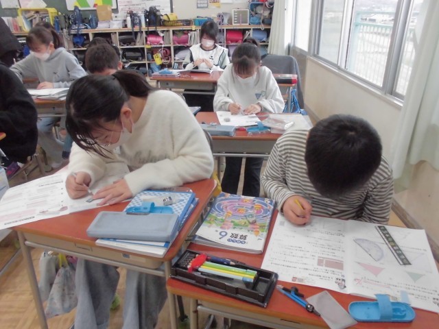 これまで学習してきたことを活用し拡大図を書いたり、さまざまな復習問題に取りかかります。