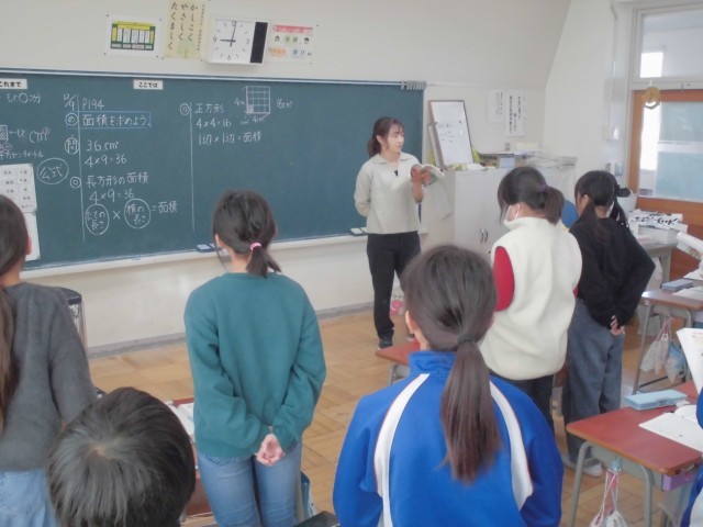 面積を求める「公式」を学習しました。起立して繰り返し何度も暗唱しながら確実に覚えてしまいます。