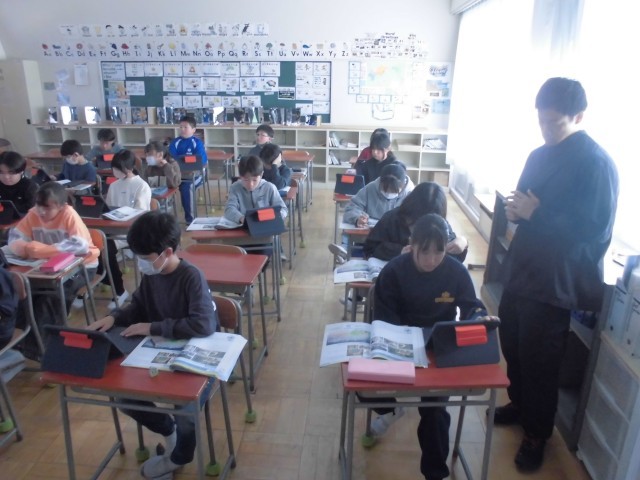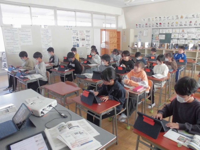 12月11日(木)6年生 外国語 公開日 2025/12/11 更新日 2025/12/11 できごと 英語ナレーションの動画を見ながら、ポイントを聞き取り、タブレットの中のカードの穴埋め問題に挑戦します。 +7