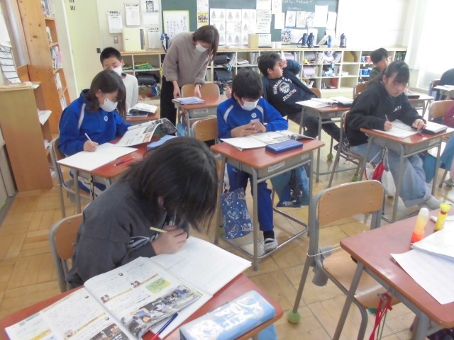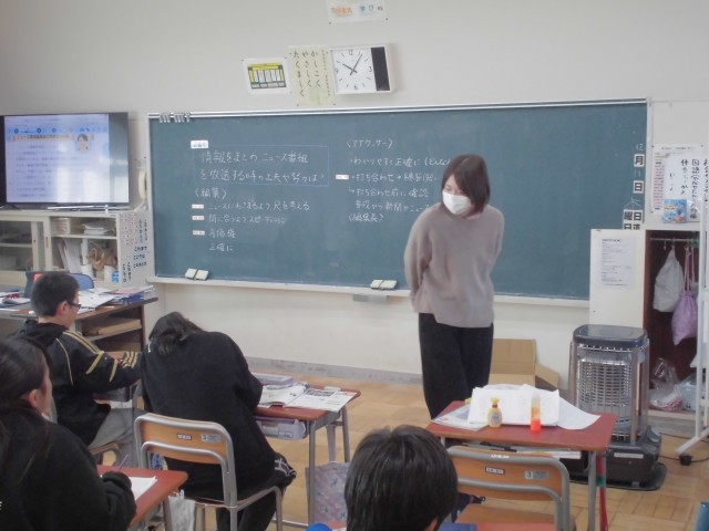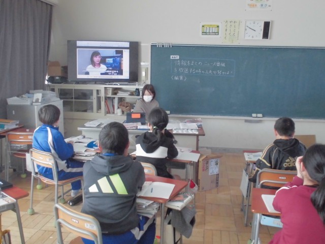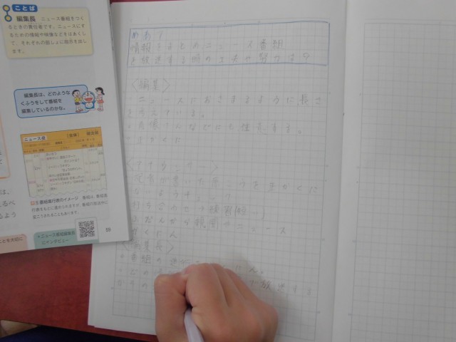 報道番組を編集する仕事の動画を見て、ポイントをまとめていきます。自分の意見をしっかりとノートに書いてまとめることが大切です。