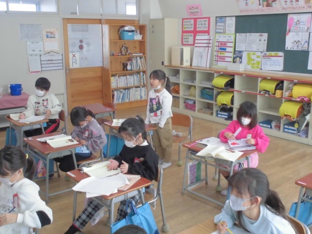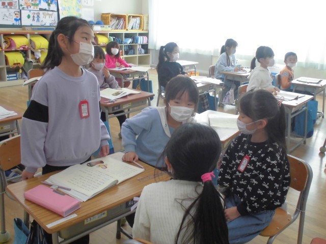 12月12日(金)1年生 国語 公開日 2025/12/12 更新日 2025/12/12 できごと むかしばなしの面白さをみんなで考えます。ネームプレートの通り、たくさんの意見が発表されました。 +6