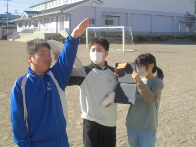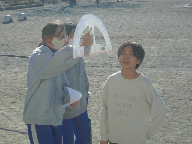 12月16日(火)6年生 算数 公開日 2025/12/16 更新日 2025/12/16 できごと これまでの拡大・縮小や角度・辺の関係を活用し、校舎の高さを計算で求めます。自分たちで考えた方法を班ごとに実践しています。 +7
