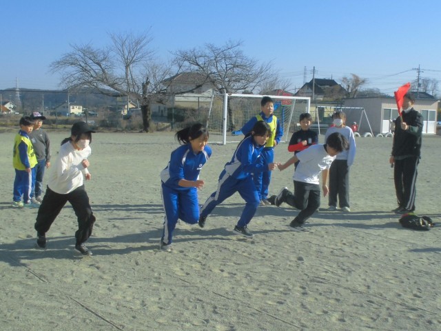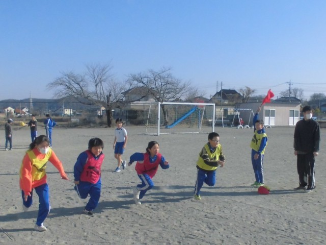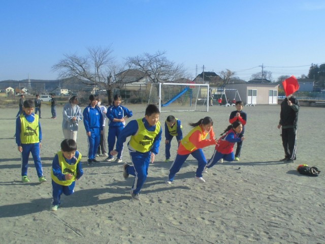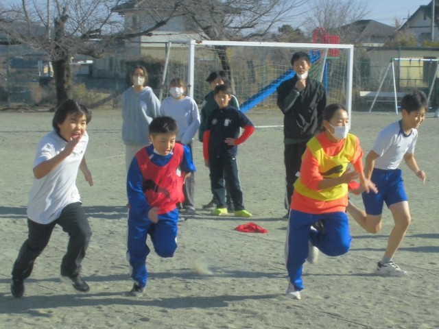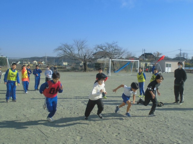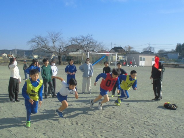 昼休みは高学年の部です。ビブス姿の役員の体育委員もガマンできずに走りました。みんなが楽しみながら運動能力を高めているのがポイントです。