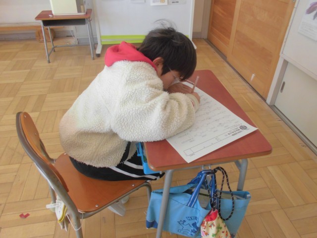 学期末はテストが多くなります。みんな違う方向を向いてテストです。