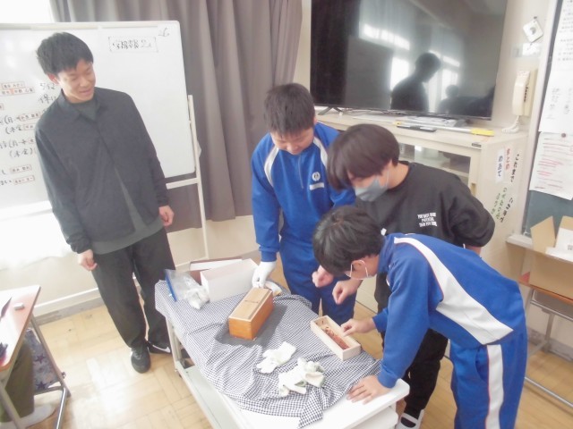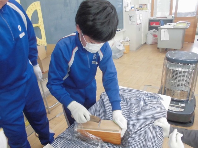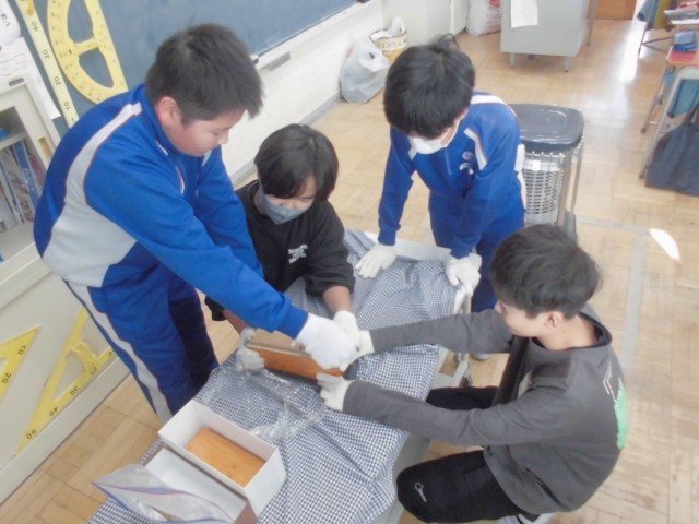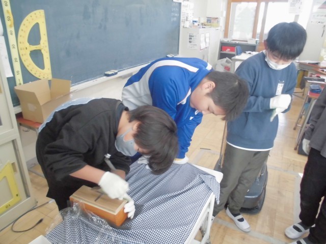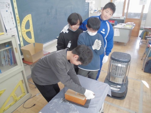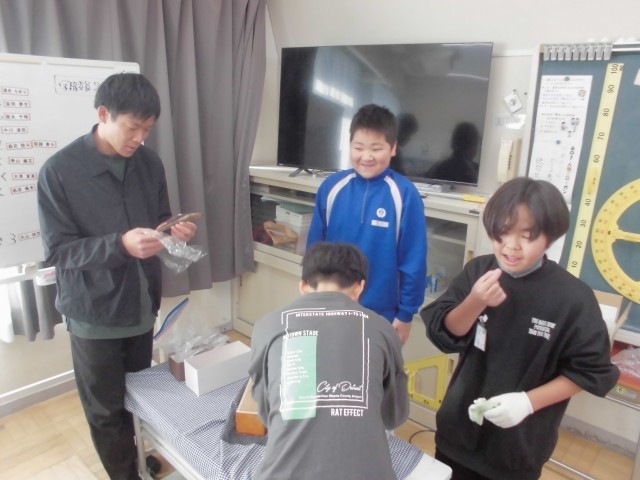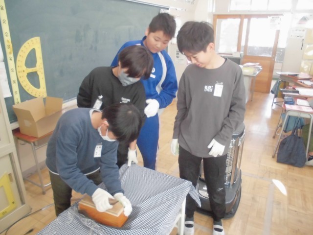 12月22日(月)6年生 家庭科 公開日 2025/12/22 更新日 2025/12/22 できごと かつお節を専用の削り器でうすく削る体験をしました。削ったかつお節は、削りたてのとてもいい香りがしました。 +6