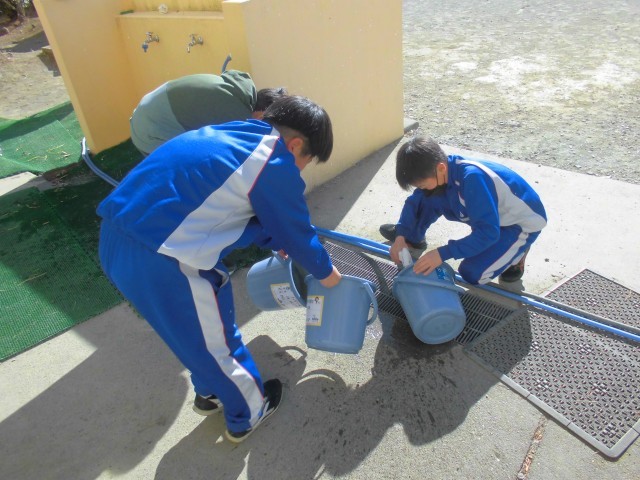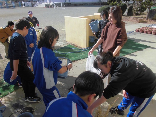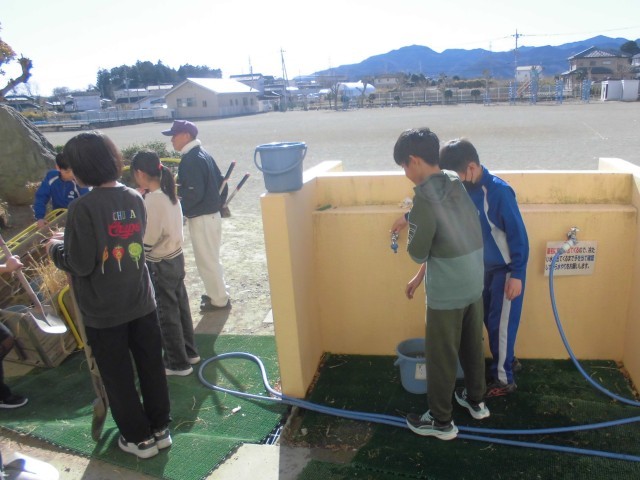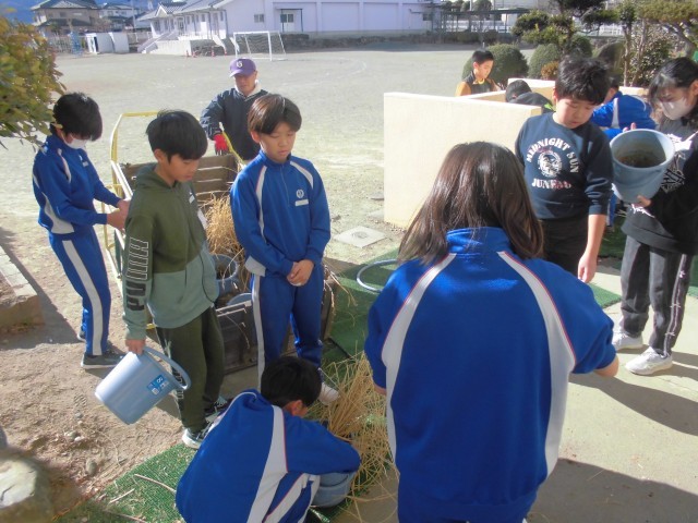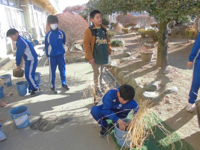 バケツ稲の学習を終え、本日2学期最後の学習日なので、きれいに片付けました。