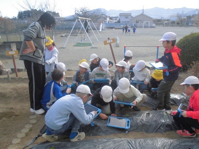 1月13日(火)2年生 生活 その2 公開日 2026/01/13 更新日 2026/01/13 できごと 昨年末に種をまいたダイコンの芽を観察します。タブレットで写真に撮ったり、手触りなどを記録したりしました。 +6