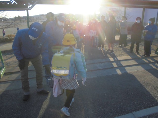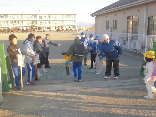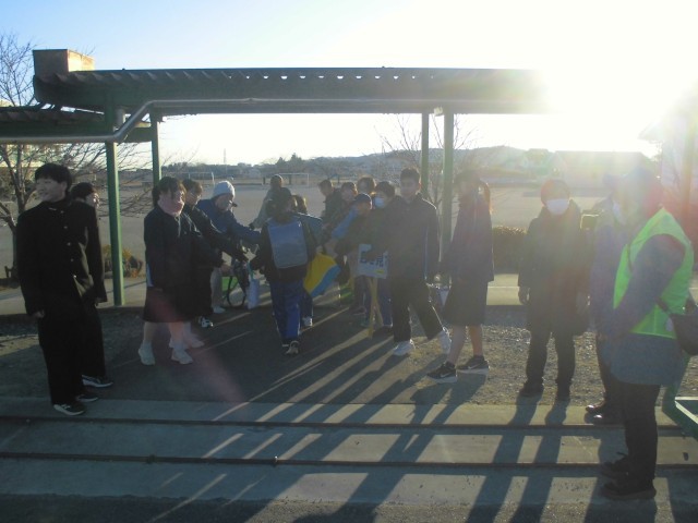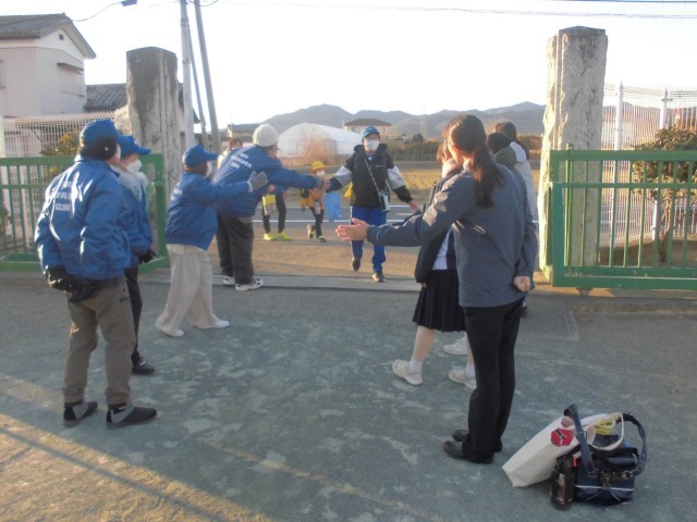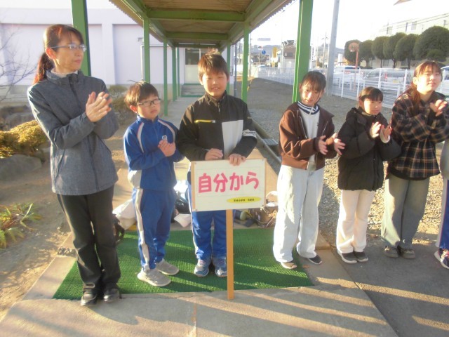 今年初めての1月のあいさつ運動です。中学生のメンバーも1年生になり身近に感じられるのか、いつもより元気なあいさつが寒空に響きました。