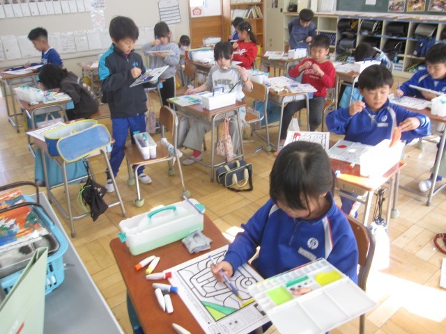 1月14日(水)2年生 図工 公開日 2026/01/14 更新日 2026/01/14 できごと 色を混ぜ合わせていろいろな色を作りました。自分の作った色で自動車をステンドガラスのようにかざりました。 +1