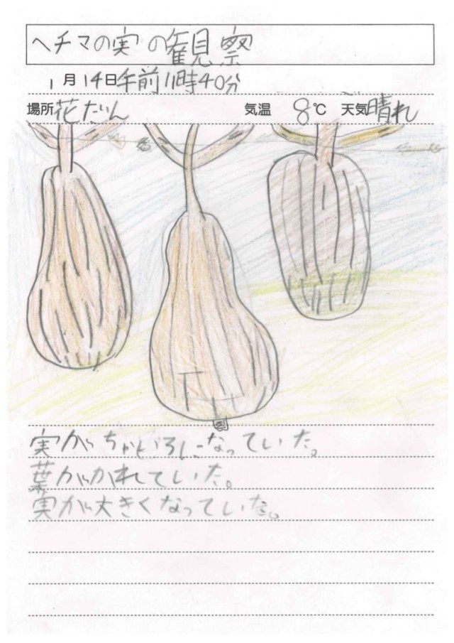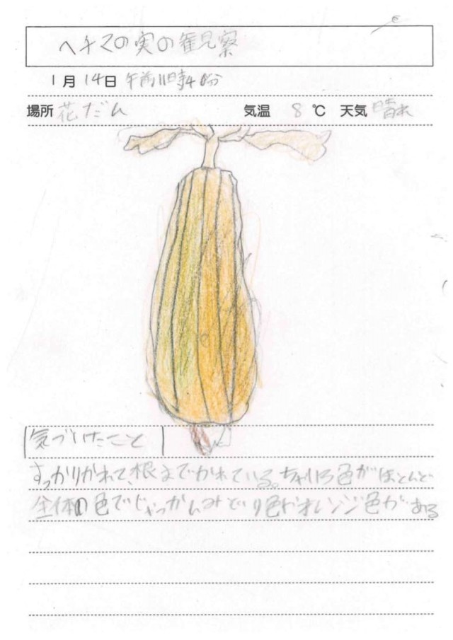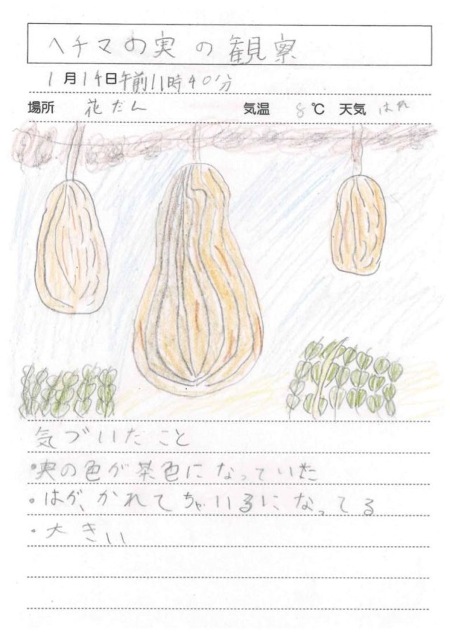 1月14日(水)4年生 理科 その2 公開日 2026/01/14 更新日 2026/01/14 できごと 観察が終わった後、枯れたヘチマを片付けました。どの子も労を惜しまず、積極的に掃除に取り組んでくれました。 +5